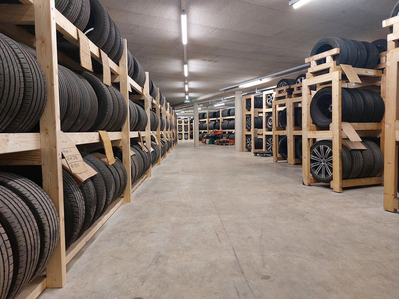 Wir lagern Ihre Reifen fachgerecht gegen eine geringe Gebühr in unserem Reifenkeller. Spezielle Reifenregale machen das Lagern im Stehen möglich. Damit Sie bei der nächsten Umrüstung nicht lange warten müssen, bereiten wir Ihre eingelagerten Räder rechtzeitig vor.