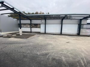 Neubau der 400 qm² großen KIA-Ausstellungshalle und der 1000 m² Gebrauchtwagenhalle. Das gesamte Ambiente des Autohauses ist nun deutlich großzügiger, heller und offener. Außerdem sind der KIA und Mazda-Verkauf jetzt unter einem topmodernen Dach vereint.
