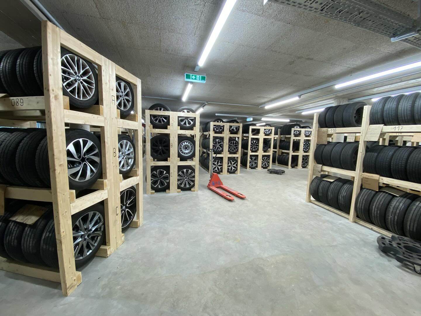 Zubau Werkstätte: Neubau Reifenkeller für die Lagerung von ca. 500 Rädergarnituren.